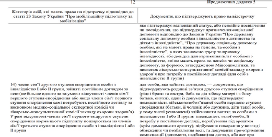 - Якщо інвалідність підтверджена на рік, то документи на відстрочку можуть переподаватись автоматично;