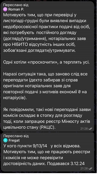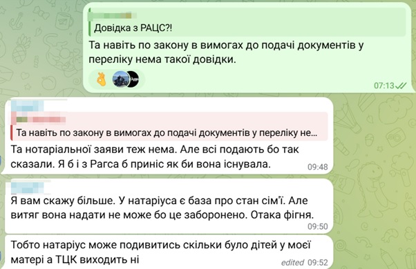 Надам ще декілька скрінів з чатів, щоб продемонструвати увесь масштаб хаосу, який супроводжує цей процес.